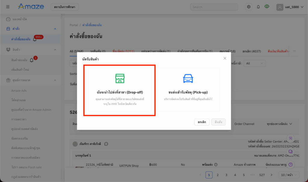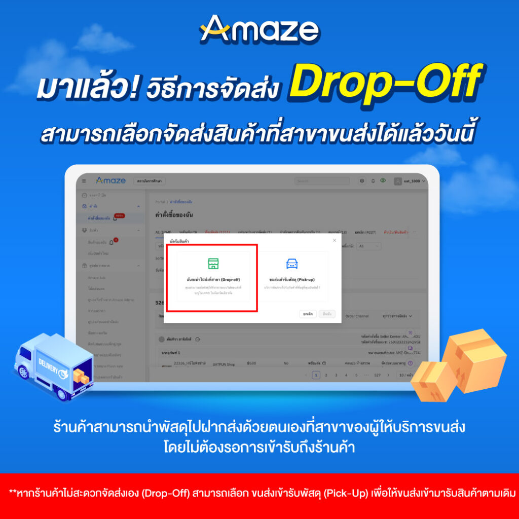 *หากร้านค้าไม่สะดวกจัดส่งเอง (Drop-Off) สามารถเลือก ขนส่งเข้ารับพัสดุ (Pick-Up) เพื่อให้ขนส่งเข้ามารับสินค้าตามเดิม